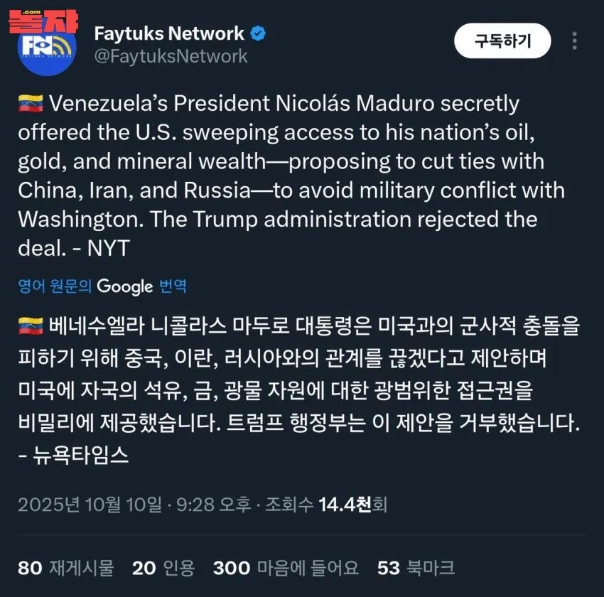 중국이 2025년 11월 1일부터 자국이 생산하는 거의 모든 제품, 심지어 그들이 생산하지 않은 제품조차 가하지 않을 것이라고 밝히는 극도로 적대적인 서한을 전 세계에 보내면서 무역에 대해 매우 공격적인 입장 을 취한 것으로 방금 알게 되었습니다. 이는 예외 없이 모든 국가에 영 향을 미치며 분명히 몇 년 전에 고안된 계획이었습니다. 이는 국제 무 역에서 전혀 전례가 없는 일이며, 다른 나라를 상대하는 데 있어 도덕 적 수치입니다.